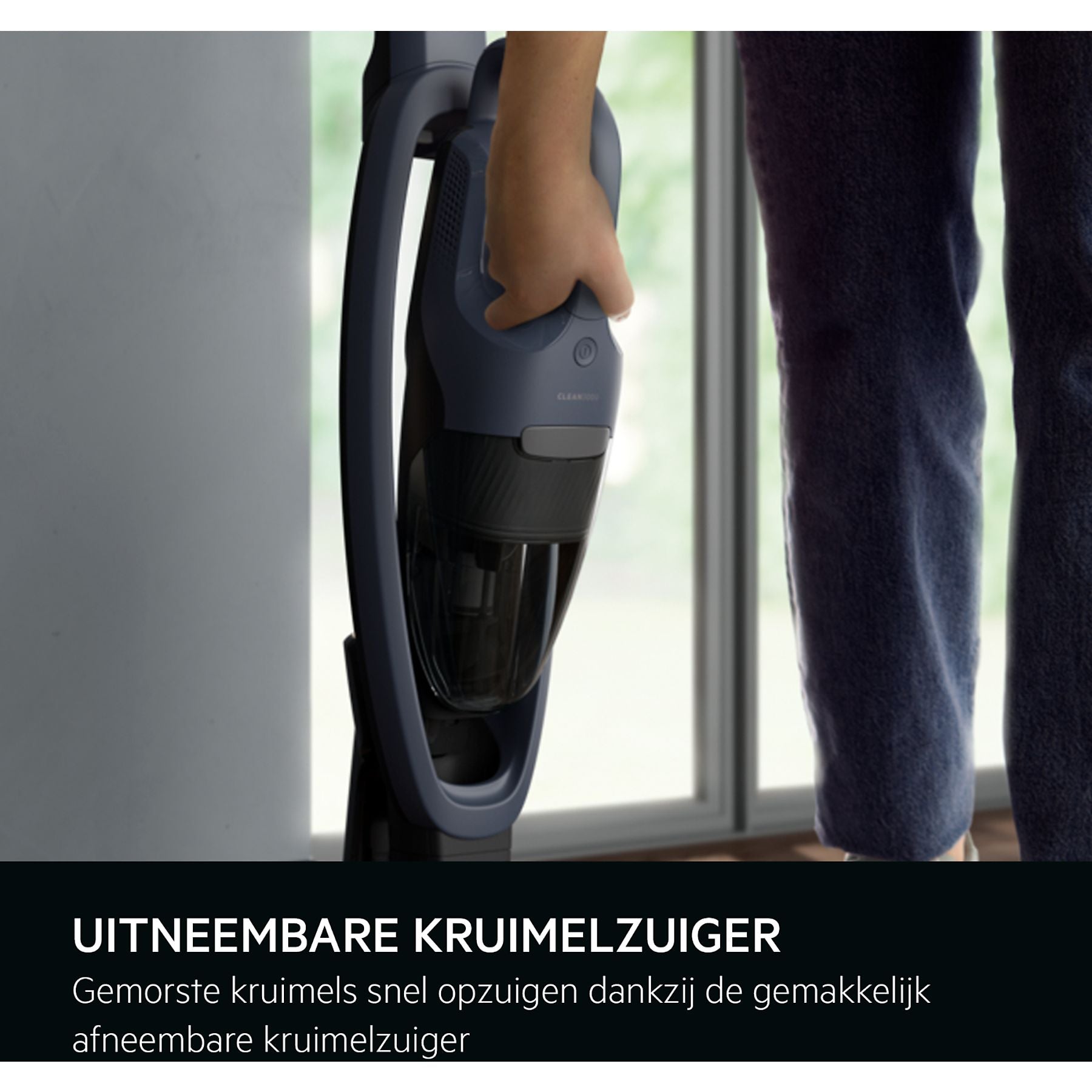 Dankzij het slanke, ergonomische ontwerp beweeg je soepel langs meubels, hoeken en onder tafels. Ben je klaar, dan zet je de steelstofzuiger gewoon in de parkeerstand. Zo blijft hij rechtop staan en kun je hem bij elk stopcontact opladen – zonder apart laadstation.