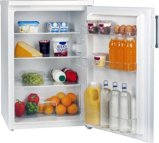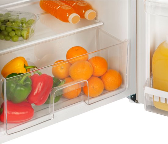 Met verstelbare legplanken, een slimme indeling en een strak wit design past deze koeler moeiteloos in elke keuken of pantry.