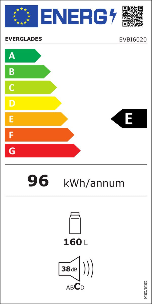 Met zijn stille werking van slechts 38 dB en energieklasse E biedt de EVBI6020 een uitstekende balans tussen comfort en efficiëntie. De koeler is overzichtelijk ingedeeld en biedt genoeg ruimte voor dagelijkse boodschappen, dranken en verse producten.