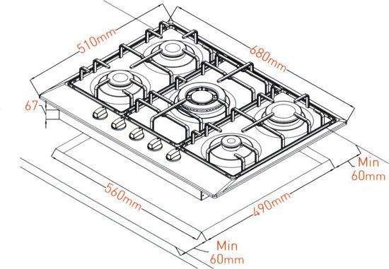| Type: | Inbouw Gaskookplaat |