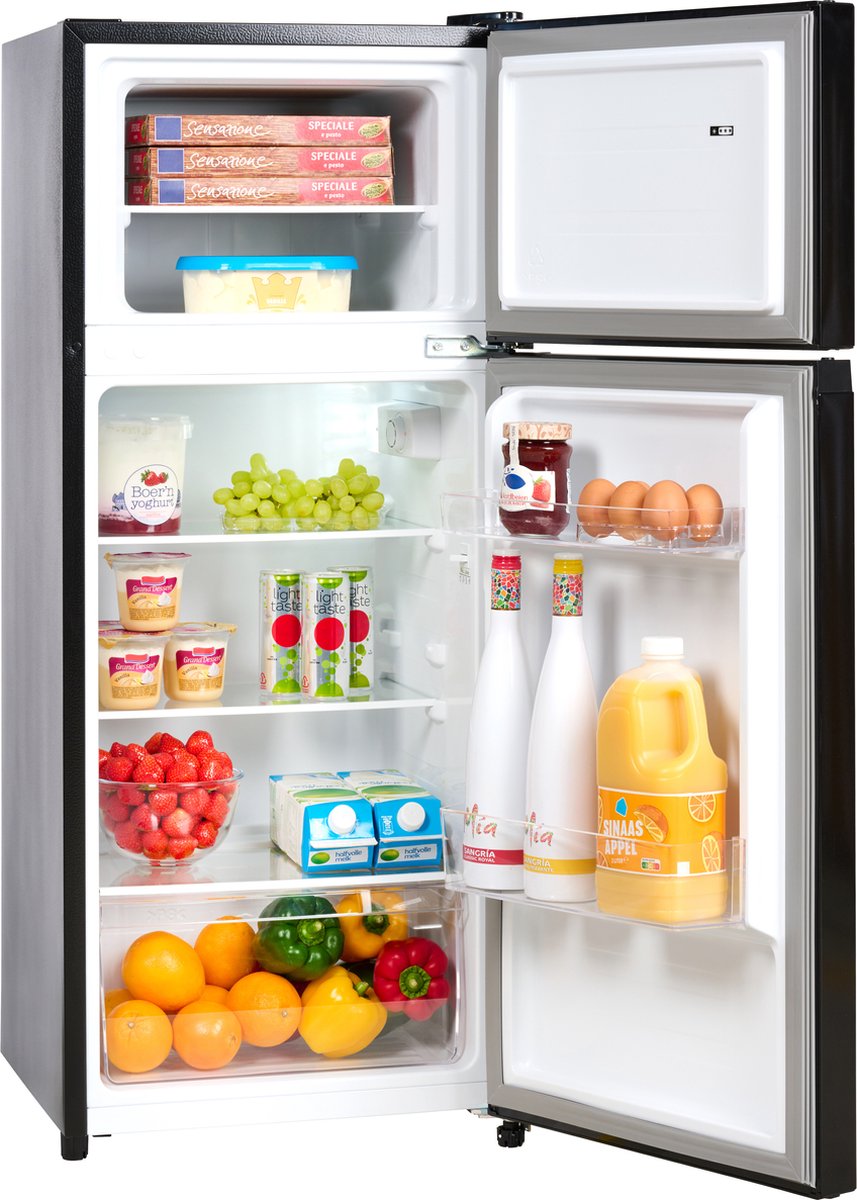 Maak kennis met de Everglades EVTD3020, een stijlvolle en compacte dubbeldeurs koelkast die uw voedsel en dranken perfect op temperatuur houdt. Dit model combineert een ruime koelruimte met een praktisch vriesvak bovenop. Met zijn strakke zwarte design en lage geluidsniveau is dit de ideale oplossing voor kleinere keukens, appartementen, studio's of als extra koel/vriescombinatie in uw kantoor of caravan.