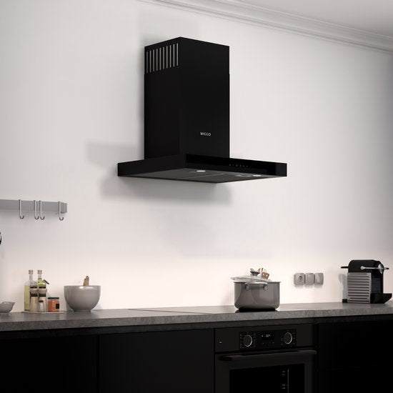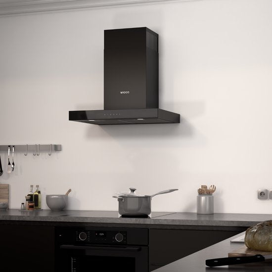 Wiggo WE-A641T(B) – T-Model Wandschouw Afzuigkap – 60 cm – Zwart – 650 m³/h – LED – Energieklasse A – 5 Jaar Garantie