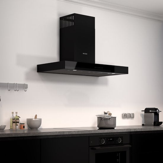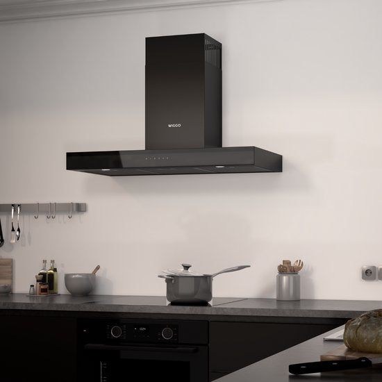 Wiggo WE-A941T(B) – T-Model Wandschouw Afzuigkap – 90 cm – Zwart – 650 m³/h – LED – Energieklasse A – 5 Jaar Garantie