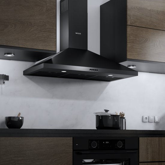 Wiggo WE-C930P(B) – Wandschouw Afzuigkap – 90 cm – Zwart – 600 m³/h – LED – 5 Jaar Garantie