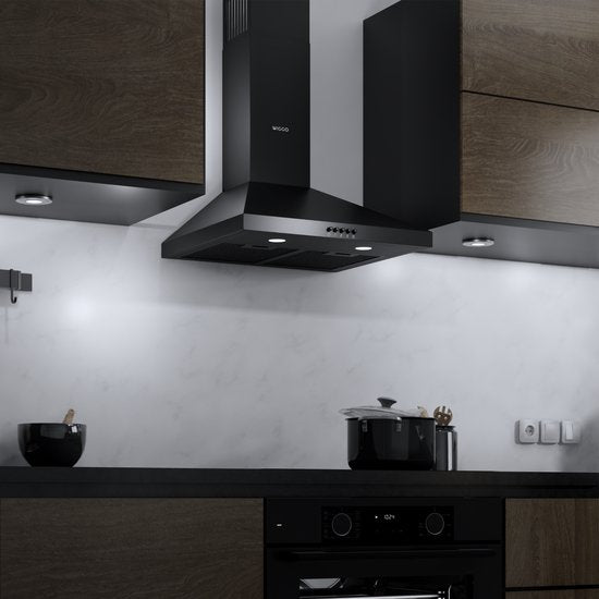 Wiggo WE-D530P(B) – Wandschouw Afzuigkap 50 cm – Zwart – 300 m³/h – LED – 5 Jaar Garantie