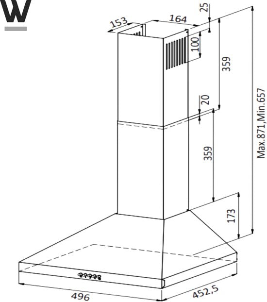 De Wiggo WE-D530P(B) is een compacte maar krachtige wandschouw afzuigkap die perfect past in kleinere keukens of boven een 50 cm kookplaat. Dankzij zijn stijlvolle zwarte uitvoering en strakke vormgeving geeft hij elke keuken een moderne uitstraling, terwijl hij kooklucht efficiënt afvoert of recirculeert.