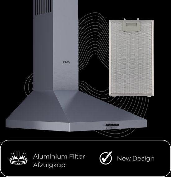 Wiggo WE-D630P(X) – Wandschouw Afzuigkap – 60 cm – RVS – 300 m³/h – LED – 5 Jaar Garantie