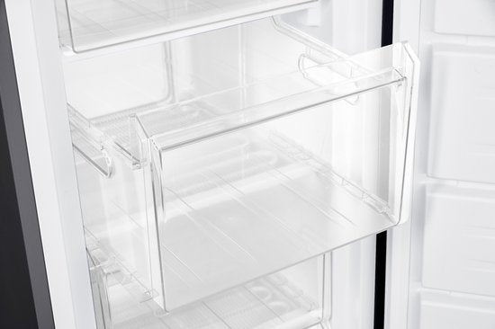 Wiggo WF-UR14E(B) – Kastmodel Vriezer – 168 Liter – 143 cm hoog – Energielabel E – Vrijstaand – 5 lades – Stil 40 dB – Omkeerbare deur – Zwart – 5 jaar garantie