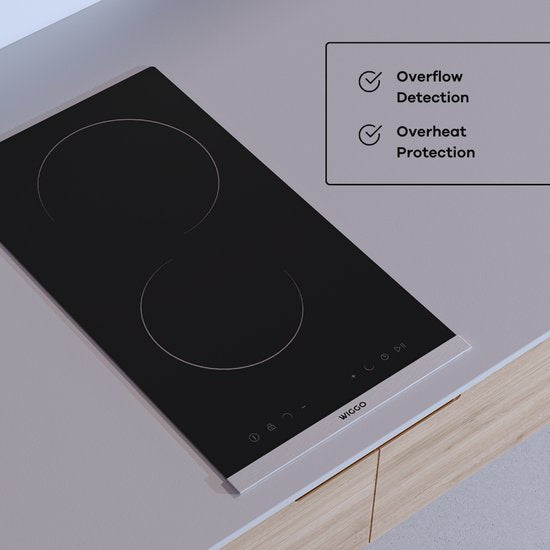 Wiggo WH-E312G(B) – Compacte Inbouw Inductiekookplaat – 30 cm – 2 Kookzones – Touch Bedieningspaneel – 1-Fase Plug & Play – Zwart Glas