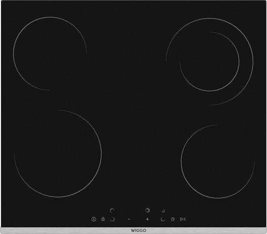 Wiggo WH-E675GC(B) – Inbouw Keramische Kookplaat – 60 cm – 4 Kookzones – Touch Bedieningspaneel – Zwart Glas