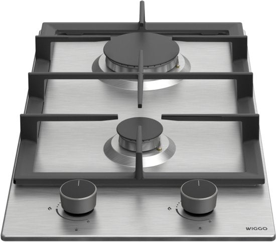 Wiggo WH-G332RD(X) - Inbouw Gaskookplaat - 30 cm - 2 Kookzones - Gietijzeren pannendragers - 5 jaar garantie - Roestvrijstaal