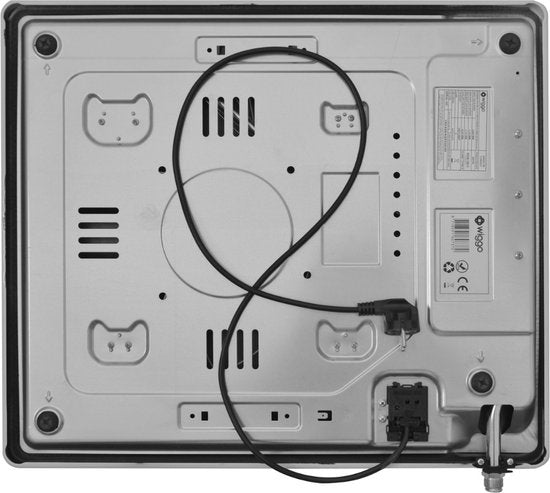 Nederland en België Aansluiting op 1 fase (tot 3,7 kW) Breedte: 60 cm Diepte: 60 cm Hoogte: 8.50 cm Snoer met stekker meegeleverd Geïntegreerde vonkontsteking