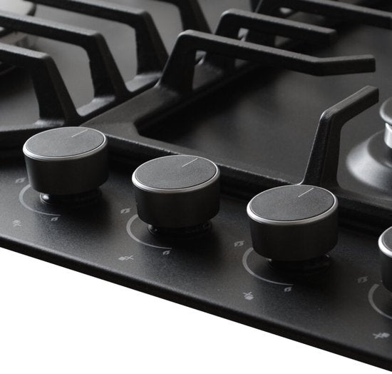Wiggo WH-G634RL(B) - Inbouw gaskookplaat met Wok - 60cm - Zwart Glas
