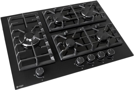 Wiggo WH-G735GR(B) – Inbouw Gaskookplaat – 70 cm – Glas op Gas – Wokbrander – 5 Kookzones – Zwart Glas