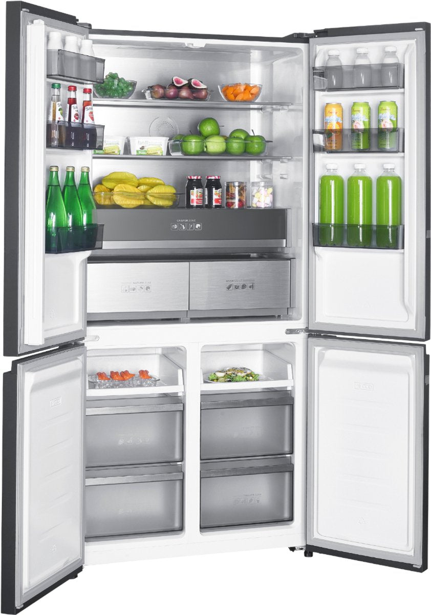Wiggo WR-MD19E(DX) – Amerikaanse Koelkast – 4-Deurs – 505 Liter – No Frost – Super Cool & Super Freeze – Slot-In – Display – Dark Inox – 5 Jaar Garantie