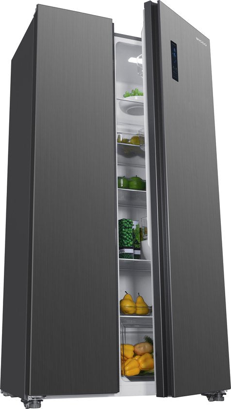 Wiggo WR-SBS18E(X) – Amerikaanse Koelkast – No Frost – 2 Deuren – Display – Super Freeze – 442 Liter – 5 Jaar Garantie – RVS